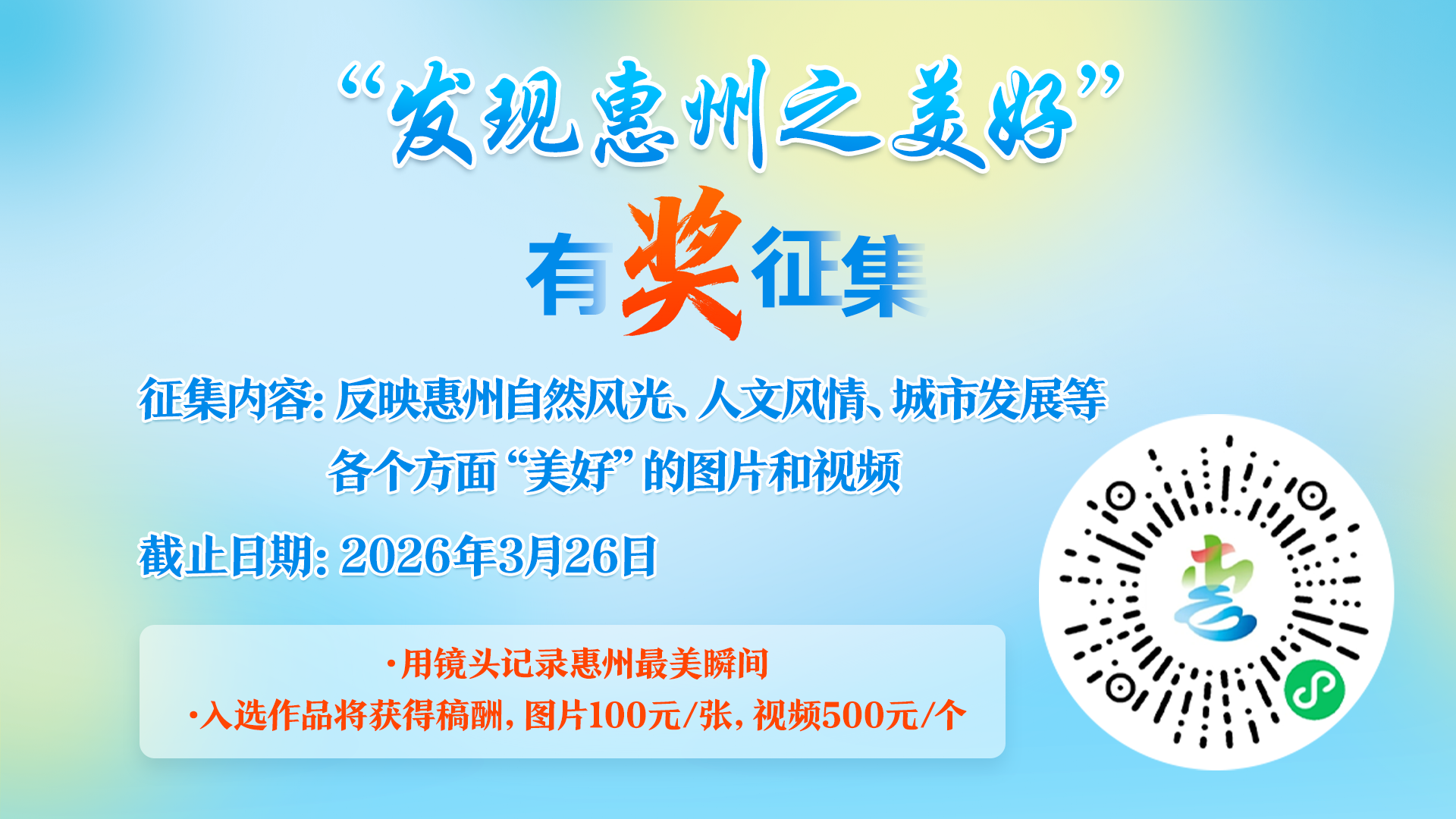 • 現(xiàn)金獎勵!全民有獎征集,發(fā)現(xiàn)惠州之美好!